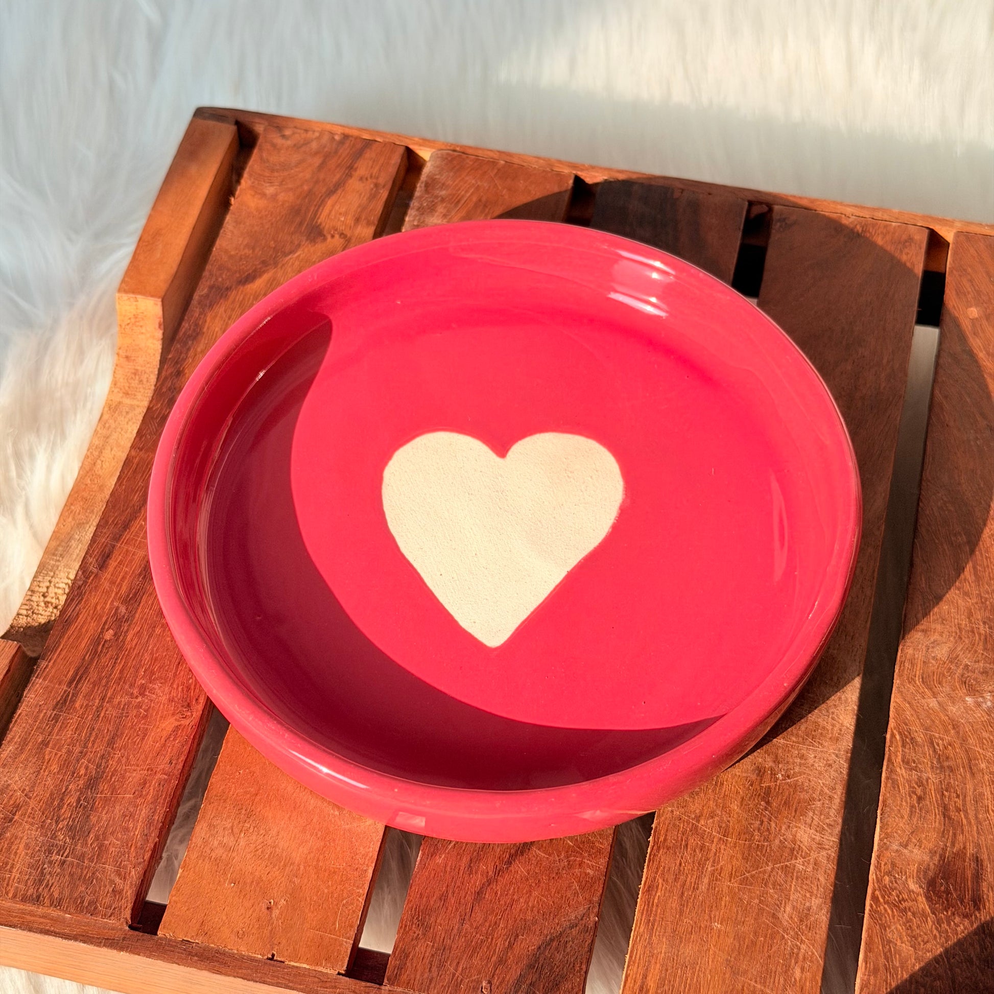 Add a little love to your everyday dining with our red Heart Ceramic Serving. Designed in a vibrant romantic red glaze with a soft ivory heart at the center, this handcrafted piece instantly elevates your table setting.