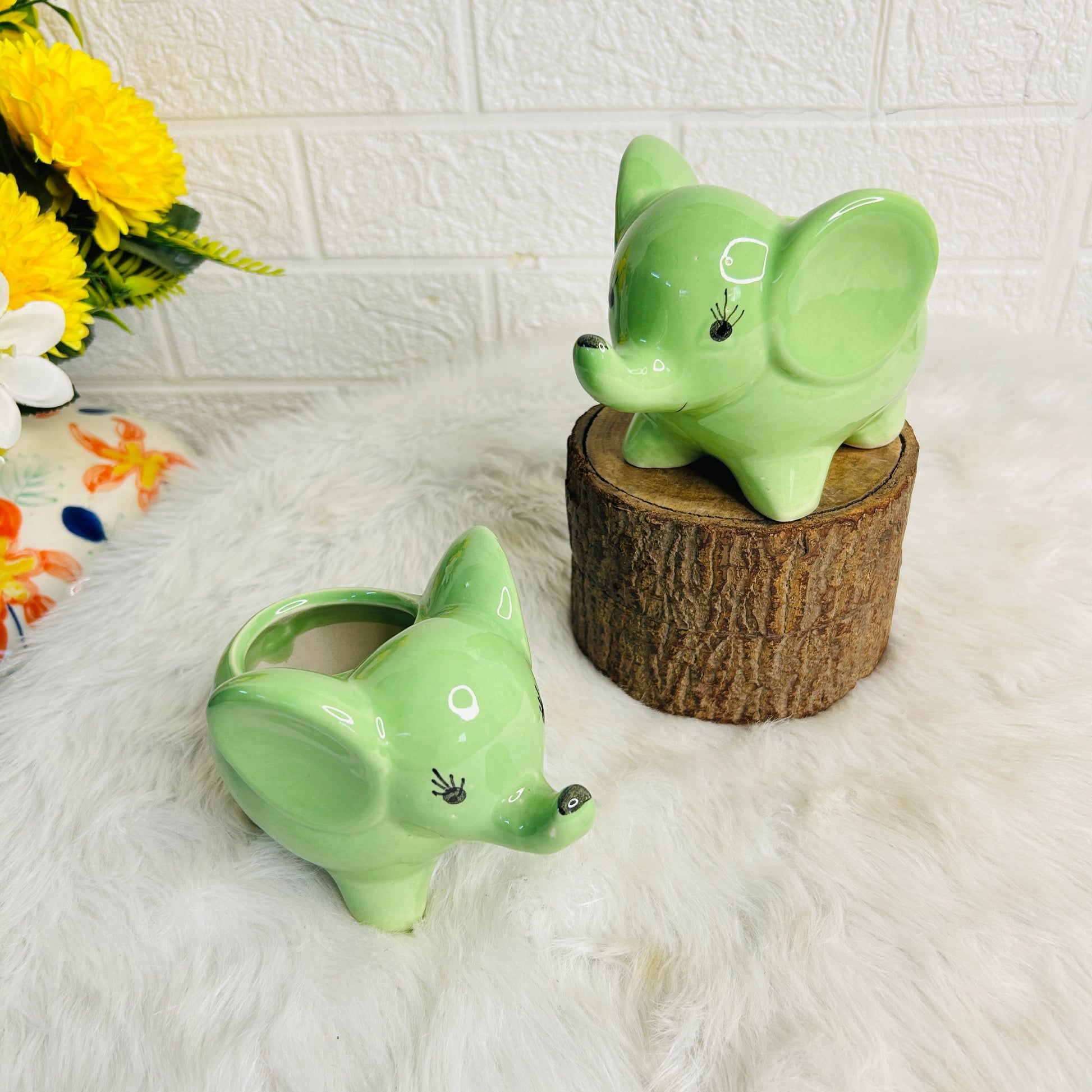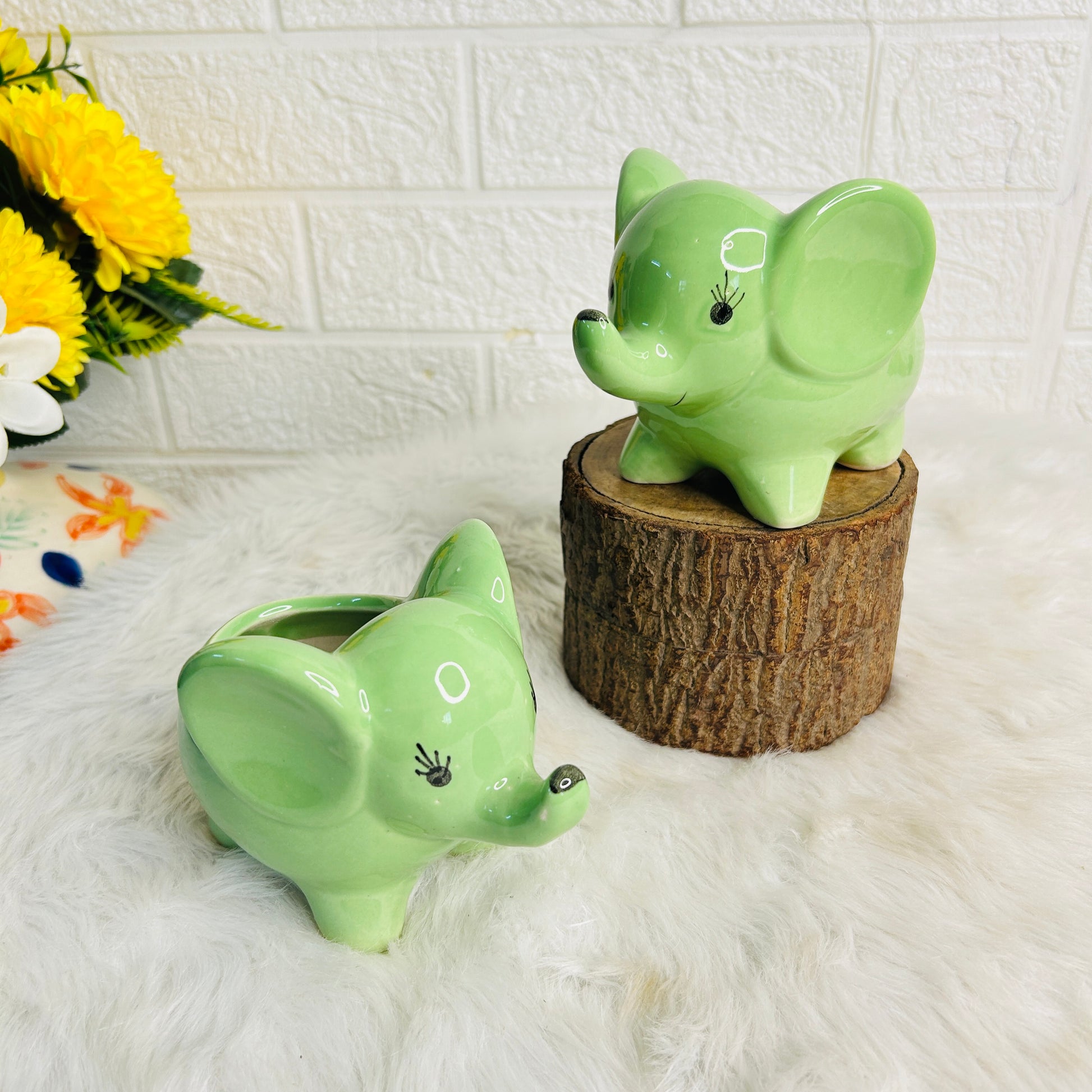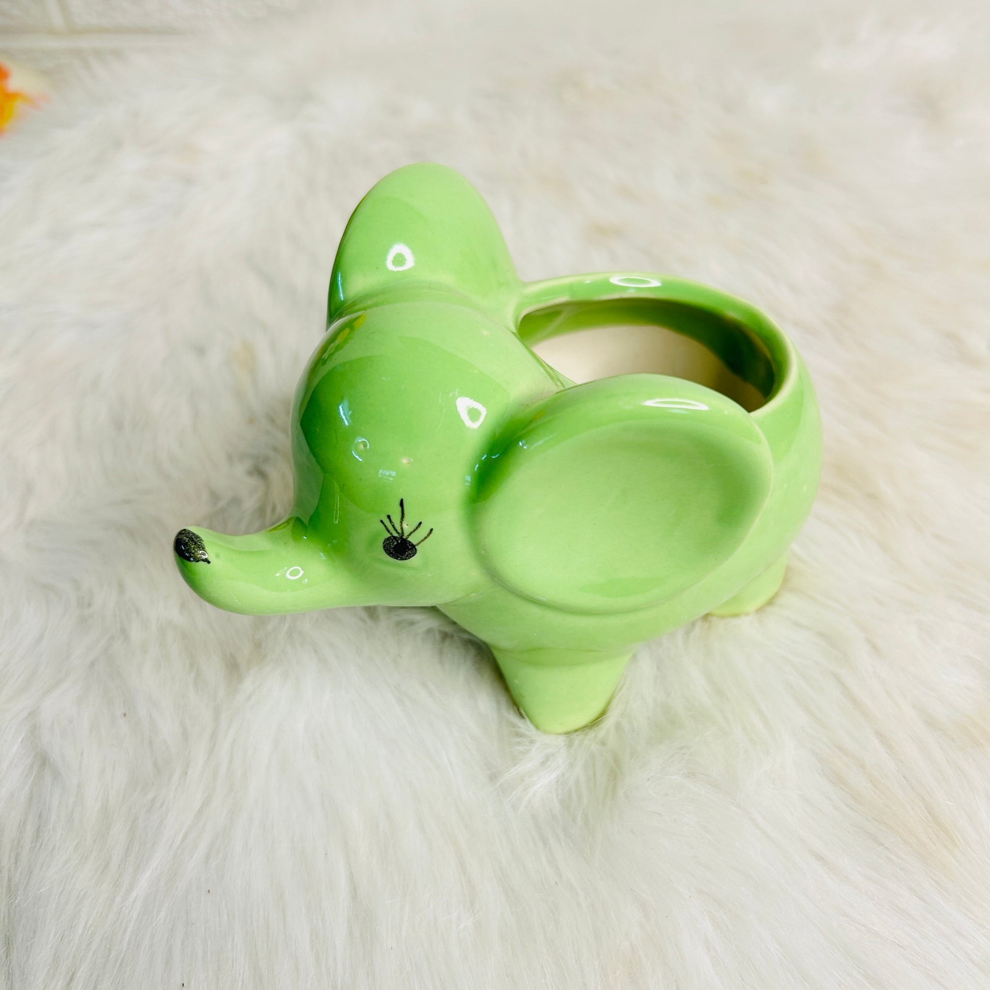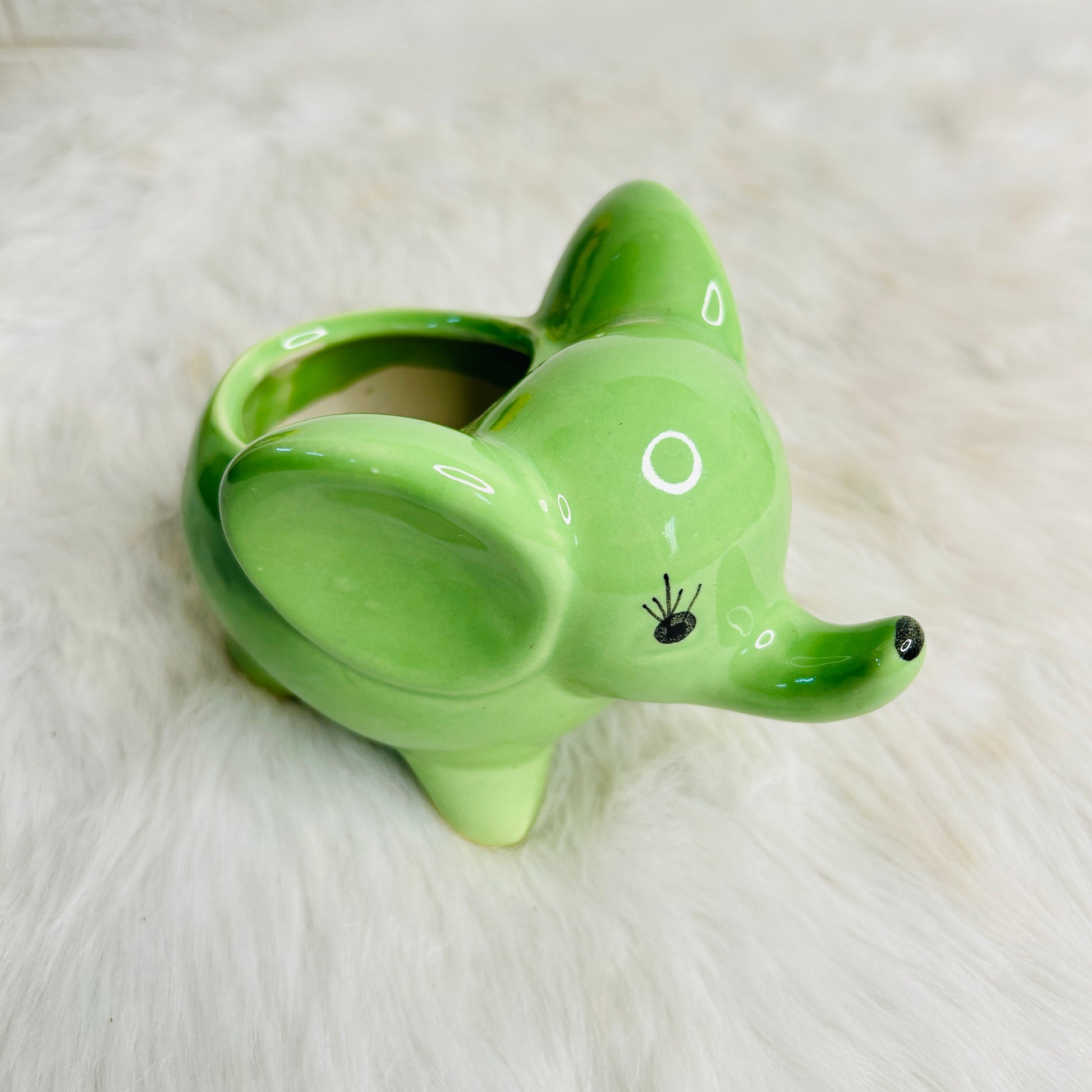 Elevate your decor with this charming green elephant planter. Handcrafted with a soothing, serene hue, it effortlessly adds a touch of tranquility and whimsy to any space. Perfect for small plants like succulents, herbs, or cacti, it combines practicality with a playful design. Whether showcased on a shelf, desk, or windowsill, this planter brings a unique pop of color and character to your home or workspace. A delightful choice for plant lovers and decor enthusiasts alike!