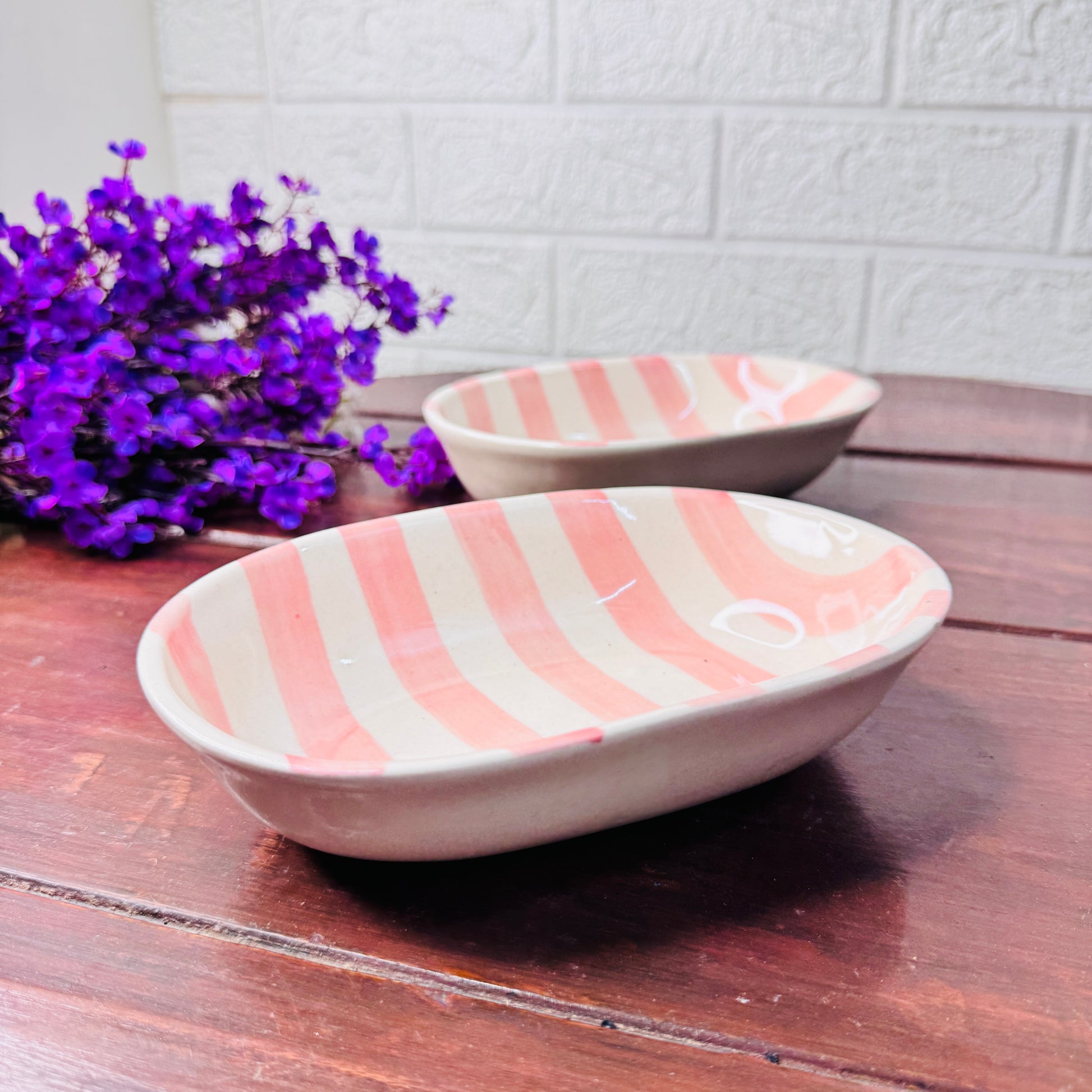 Handcrafted Peach & White Striped Oval Ceramic Bowl