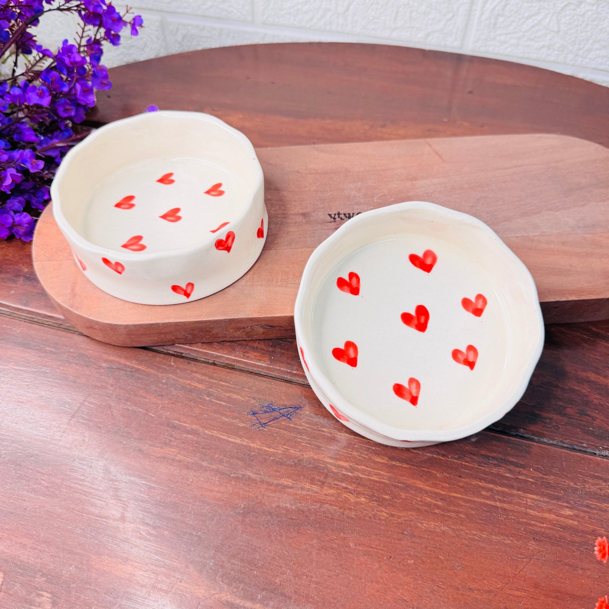 Ceramic Bowl with Red Heart Print – Cute & Minimal